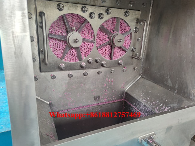 Duplex Plodder (extrudeuse à double vis) : Les matières entrent dans la machine à vide à double courroie, forment une structure dense.Démarrer la première vis.Après que les matières sont évacuées, démarrer la seconde vis.